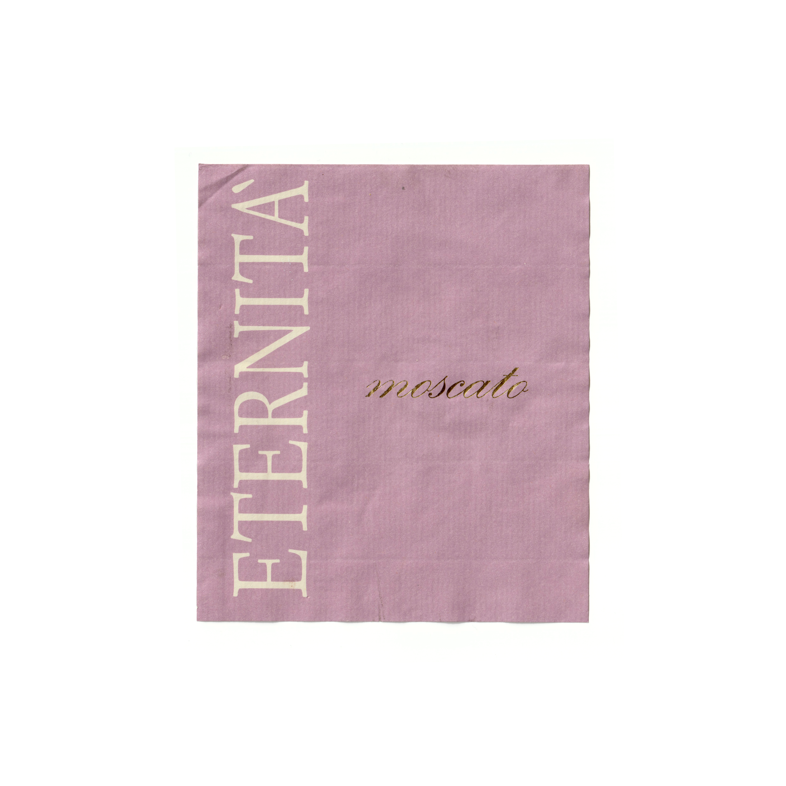 Il vino bianco Eternità, prodotto a Viterbo, in Italia, presenta un’etichetta rettangolare realizzata in carta marcata e stampata con tecnologia Offset.