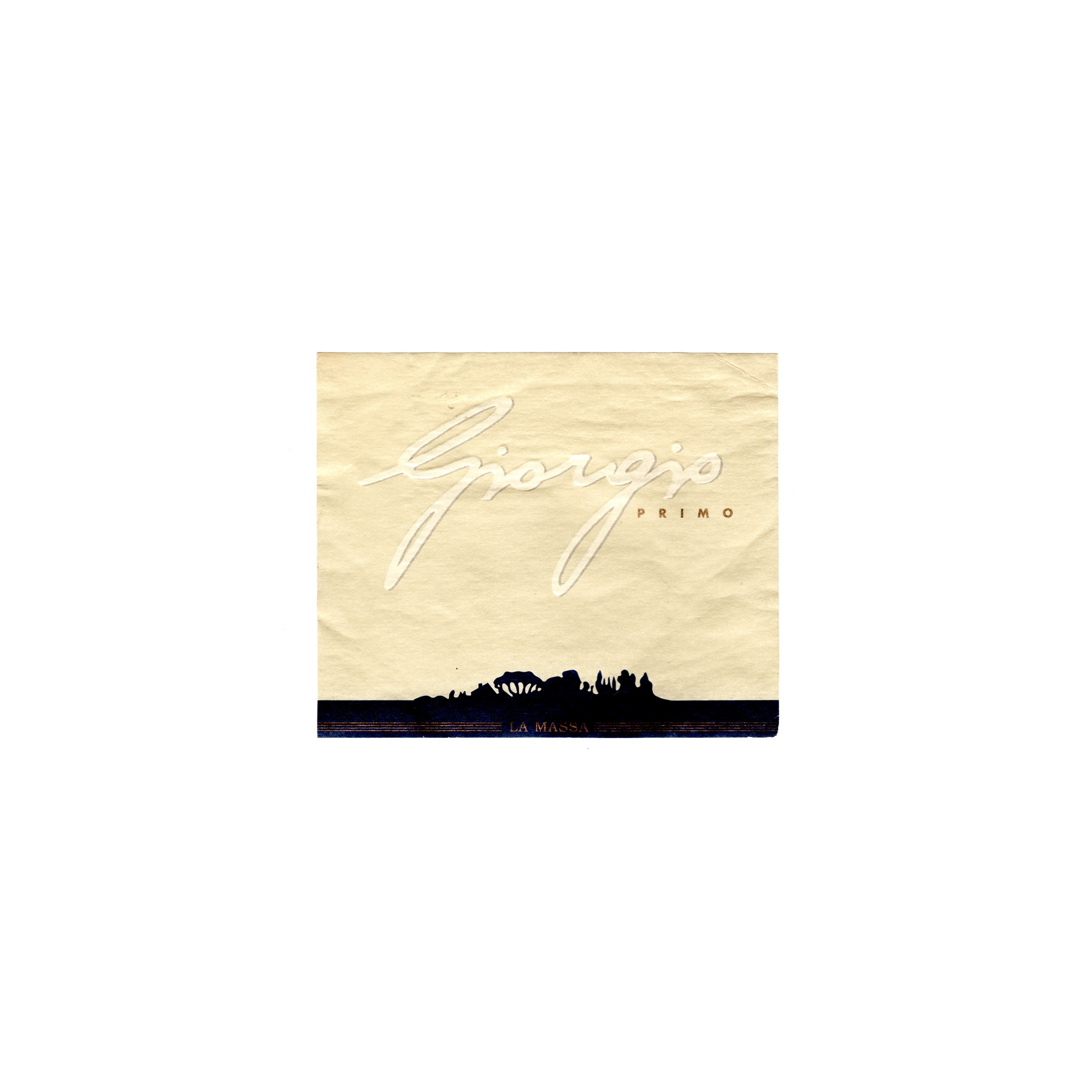 Il N/A Giorgio Primo, prodotto a N/A, in Italia, presenta un’etichetta rettangolare realizzata in carta patinata opaca e stampata con tecnologia offset.