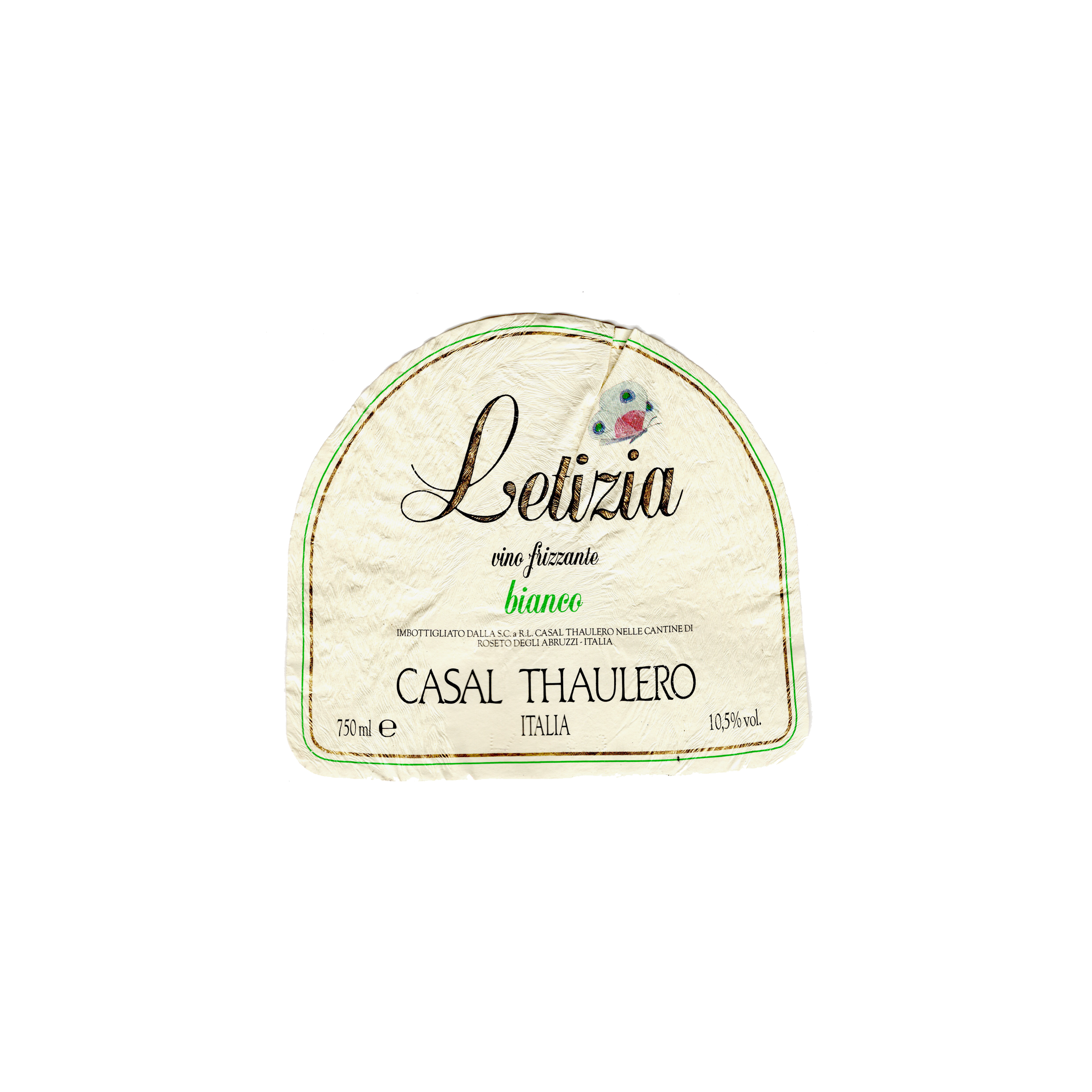Il vino bianco Letizia, prodotto a Roseto Degli Abruzzi, in Italia, presenta un’etichetta altro realizzata in carta patinata lucida e stampata con tecnologia offset.