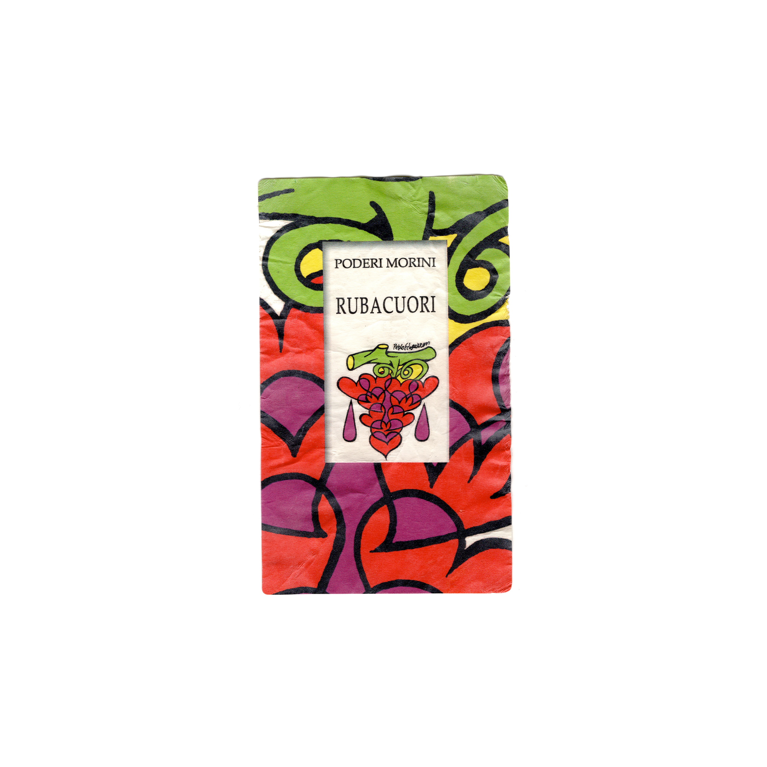 Il N/A Rubacuori, prodotto a Faenza, in Italia, presenta un’etichetta rettangolare realizzata in carta patinata lucida e stampata con tecnologia offset.