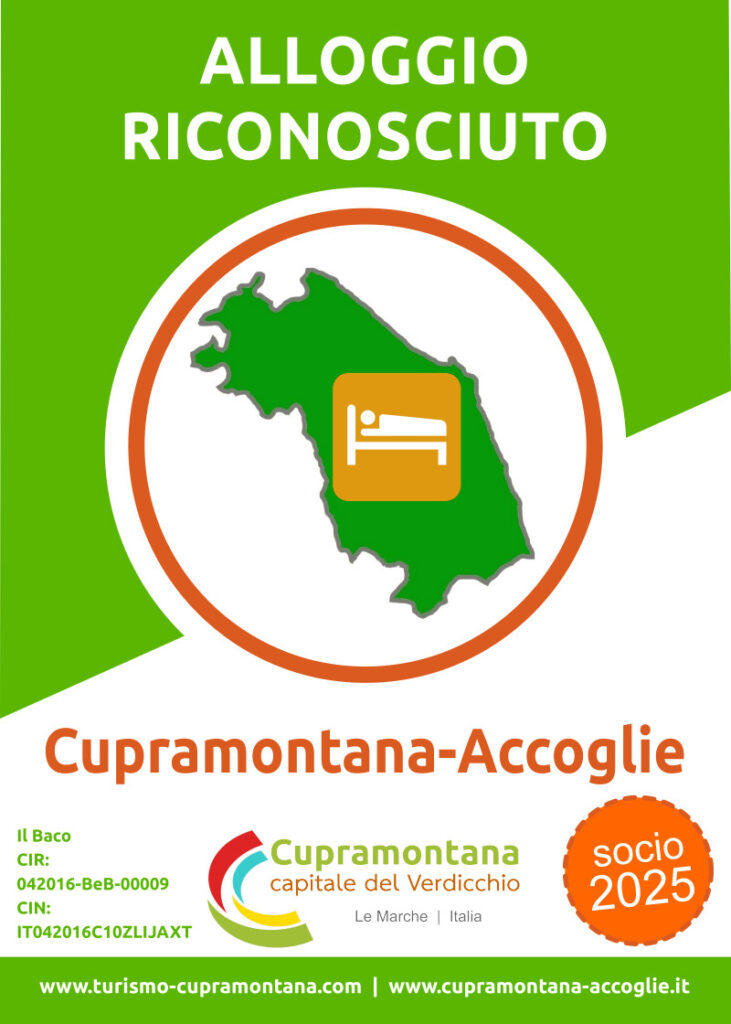 Tutte le nostre strutture convenzionate sono riconoscibili dall’apposita targa e ufficialmente riconosciute dal Comune di Cupramontana e dalla Regione Marche.
